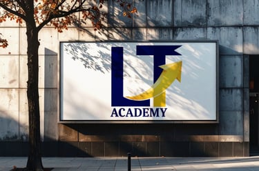 The LT Academy branding project focuses on creating a bold, modern identity optimized for digital platforms. The logo symbolizes growth and direction—perfect for a training academy. The visual identity system is crafted for consistency across online learning materials, social media content, and brand merchandise.